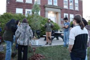 The DBH is measured, recorded and a bright dot placed at the point of measure to provide a known height for image analysis. A high resolution digital photograph is then taken. The image is then processed using software called ImageJ. This software allows us to scale the pixels of the image to the known height of 4.5 feet based on the location of the dot placed on the tree. The following image measurements are taken, DBH, total tree height, crown height, and crown diameter at regular intervals of crown height. Volume of the crown is then calculated by way of analyzing each crown segment as a truncated cone (Cadori et al. 2016, Heger 1965).